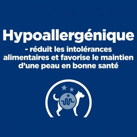 Ces croquettes Hill’s mu00e9dicalisu00e9es sont destinu00e9es u00e0 la prise en charge nutritionnelle des allergies alimentaires du chien. Veuillez consulter votre vu00e9tu00e9rinaire avant utilisation.