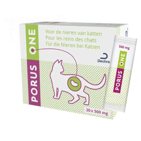 Porus One est un produit pour les reins du chat. Porus One intercepte les pru00e9curseurs des toxines uru00e9miques (= toxines ru00e9nales) au site de leur production dans l’intestin et les u00e9limine avec les excru00e9ments. Ce faisant, toutes les billes de Porus One sont complu00e8tement u00e9liminu00e9es. Porus One n’est pas mu00e9tabolisu00e9 et, par consu00e9quent, il ne sollicite pas le mu00e9tabolisme du chat.