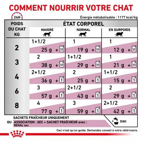 A savoir: les sachets repas Veterinary Health Nutrition Cat Renal Poulet Royal Canin aide u00e0u00a0limiter le risque associu00e9 de troubles digestifs liu00e9s u00e0u00a0l’uru00e9mie .